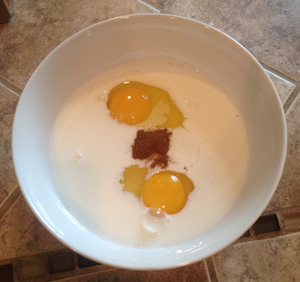 - Beat together egg, milk, and cinnamon.