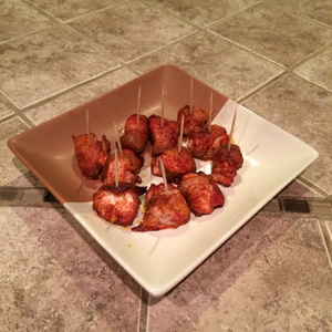 This recipe is courtesy of Paula Deen from Food Network. We have made these many, many times. Ingredients 1 1/4 pounds boneless, skinless, chicken breasts (about 4 breasts) 1 (1-pound) package sliced bacon 2/3 cup firmly packed brown sugar 2 tablespoons chili powder Directions Preheat oven to 350 degrees F. Cut chicken breasts into 1-inch cubes. …